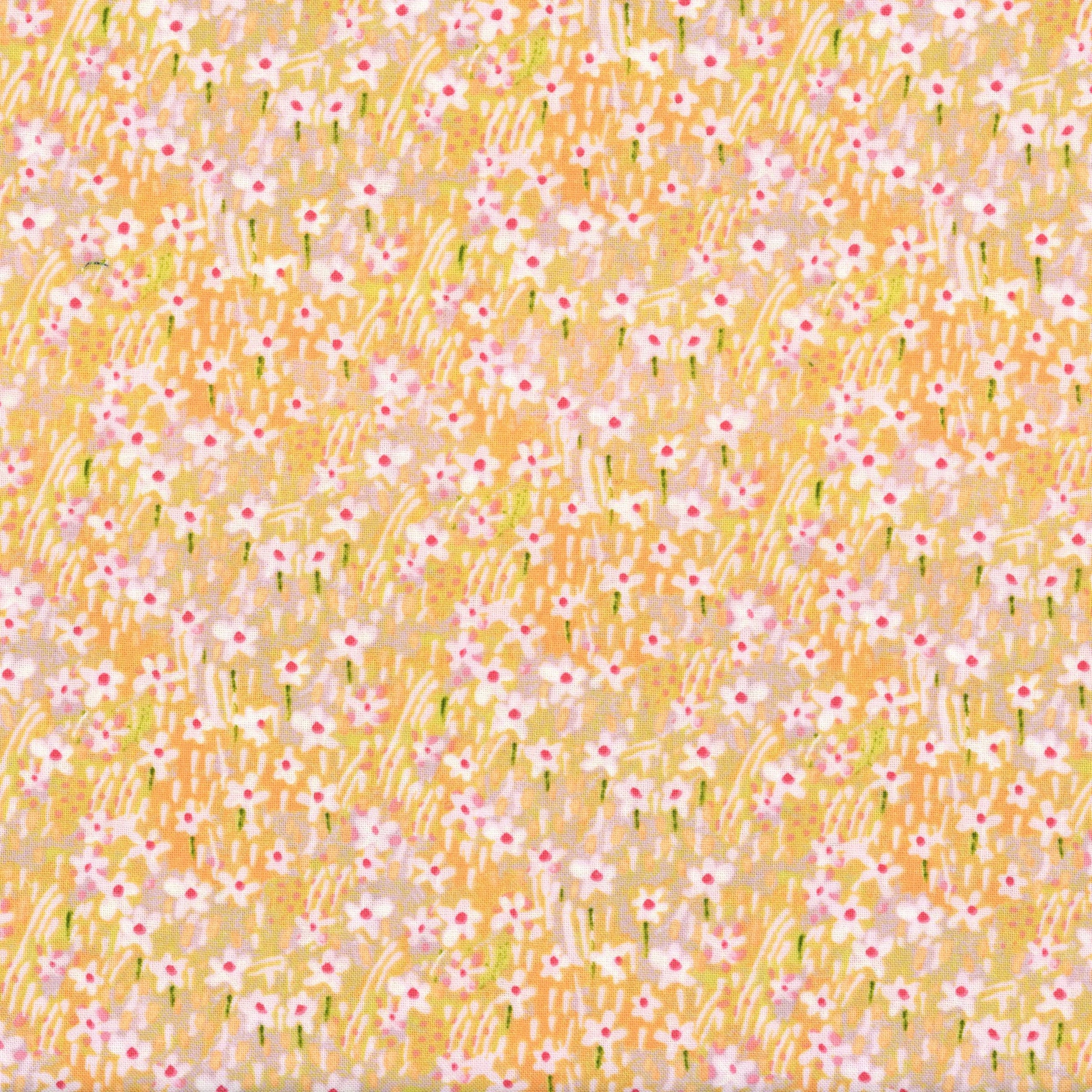 Bring a touch of sunny charm to your next project with this delightful print from Good Company by Cori Dantini for Blend Fabrics. Scattered with tiny pink and white blossoms floating across a warm, golden–peach background, this design feels gentle, uplifting, and perfectly suited to projects that call for a soft, floral aesthetic.