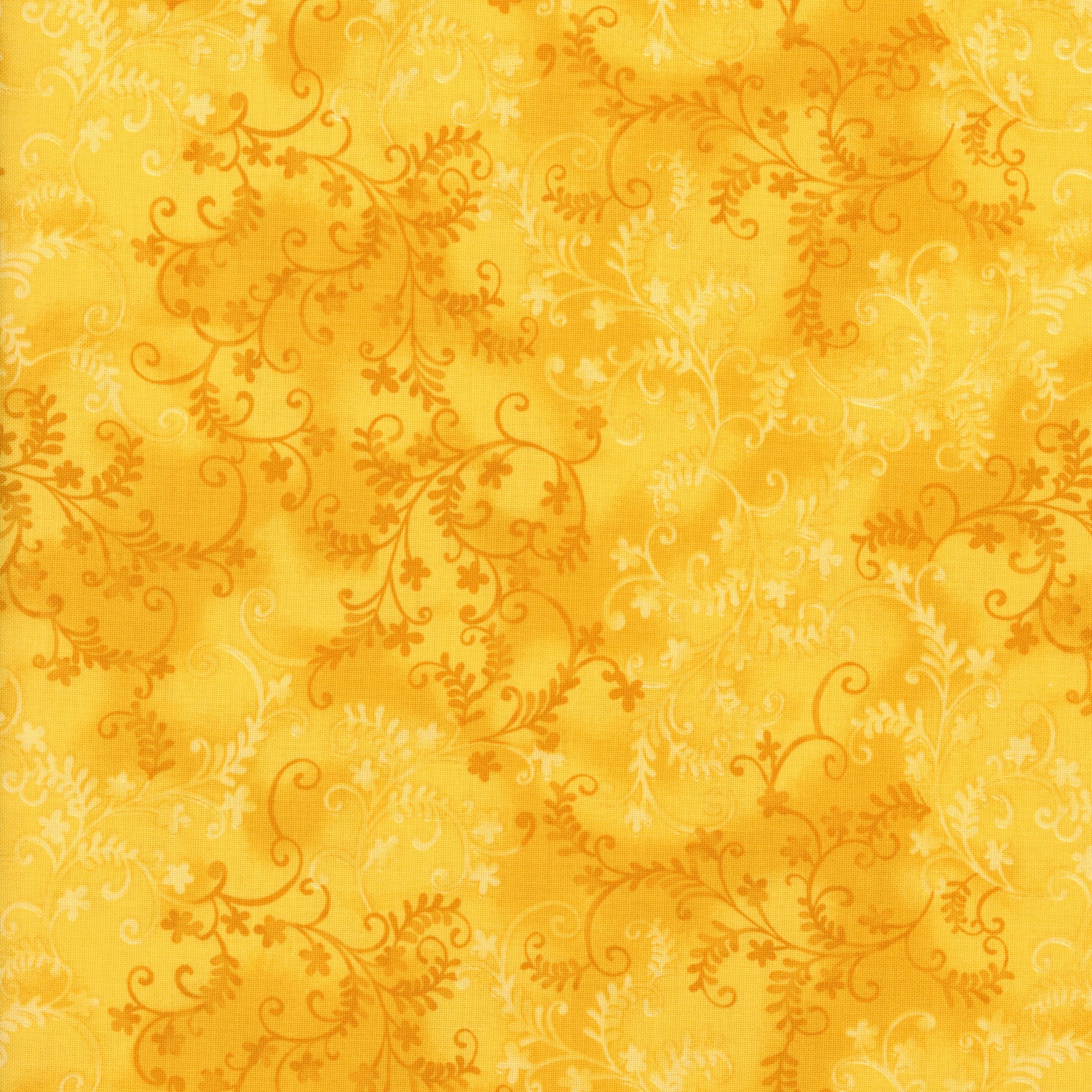 Design: Swirling botanical vines in layered yellow, gold and cream tones