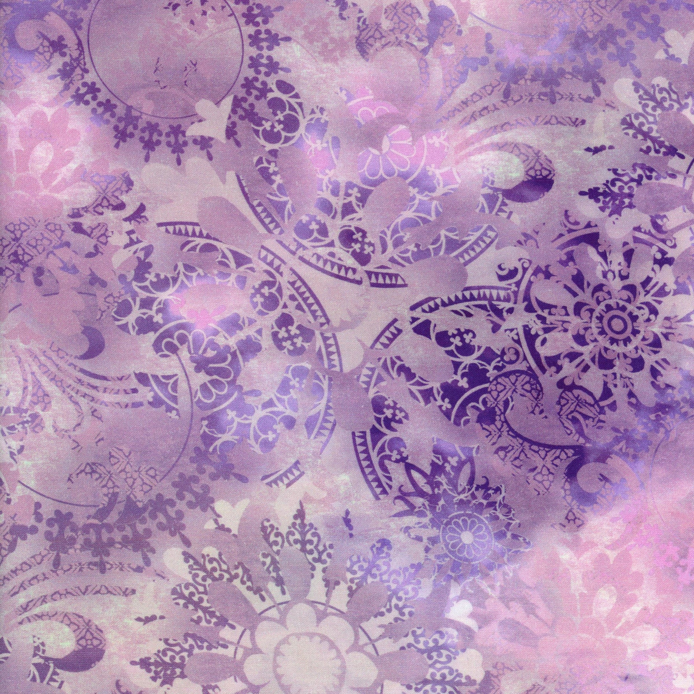 Elevate your next quilt with the ethereal beauty of Diaphanous by Lloyd Curzon. This fabric features an intricate filigree-inspired design layered over soft, dreamy washes of lavender, lilac and violet. The delicate lace-like motifs create a sense of quiet elegance, making this print an ideal choice for projects that call for subtle movement, texture and a touch of whimsy.