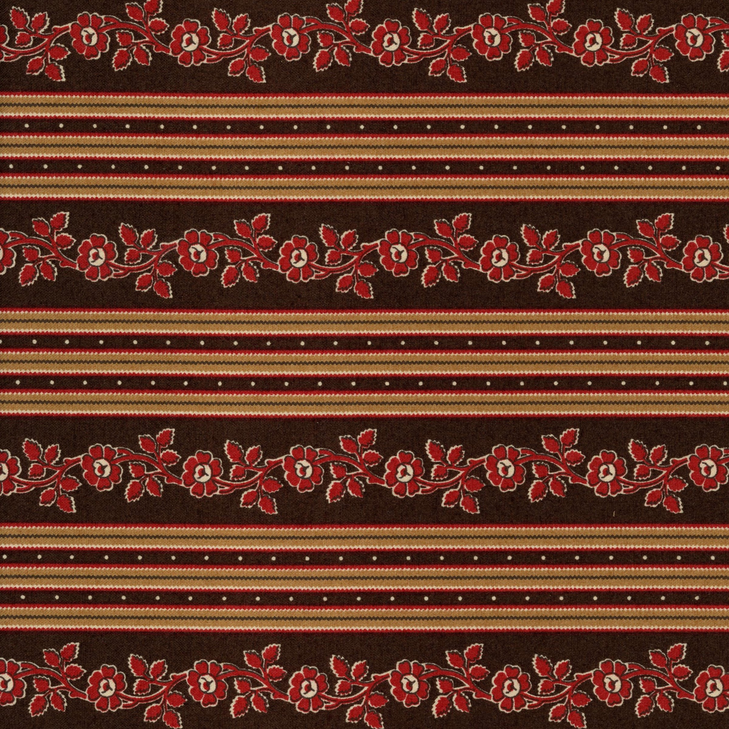 Bring a touch of timeless charm to your quilting projects with Andover Little House on the Prairie – Rose Stripes. This fabric features rich brown tones accented with deep red floral garlands and alternating stripe patterns, perfectly evoking the warmth and rustic style of traditional American prairie life. Its classic stripe design makes it an ideal choice for borders, sashing, or adding a heritage-inspired look to your patchwork creations.