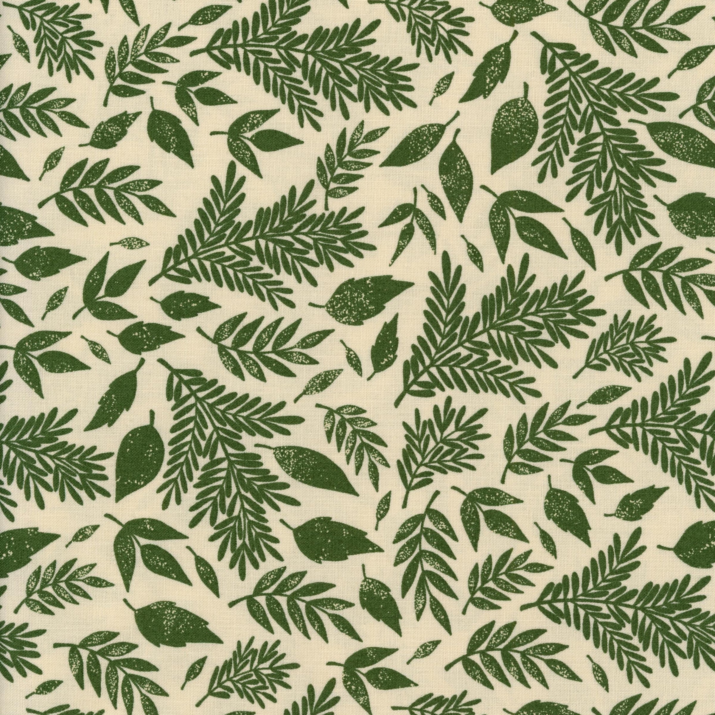 Bring the beauty of hand-printed botanicals into your quilting with Moda Flower Press by Katharine Watson. Featuring a scattered design of deep green leaves and fern fronds against a soft cream background, this fabric captures the organic charm of traditional block printing. Perfect for projects that celebrate nature, this fabric adds texture and elegance to any quilt, craft, or sewing project.