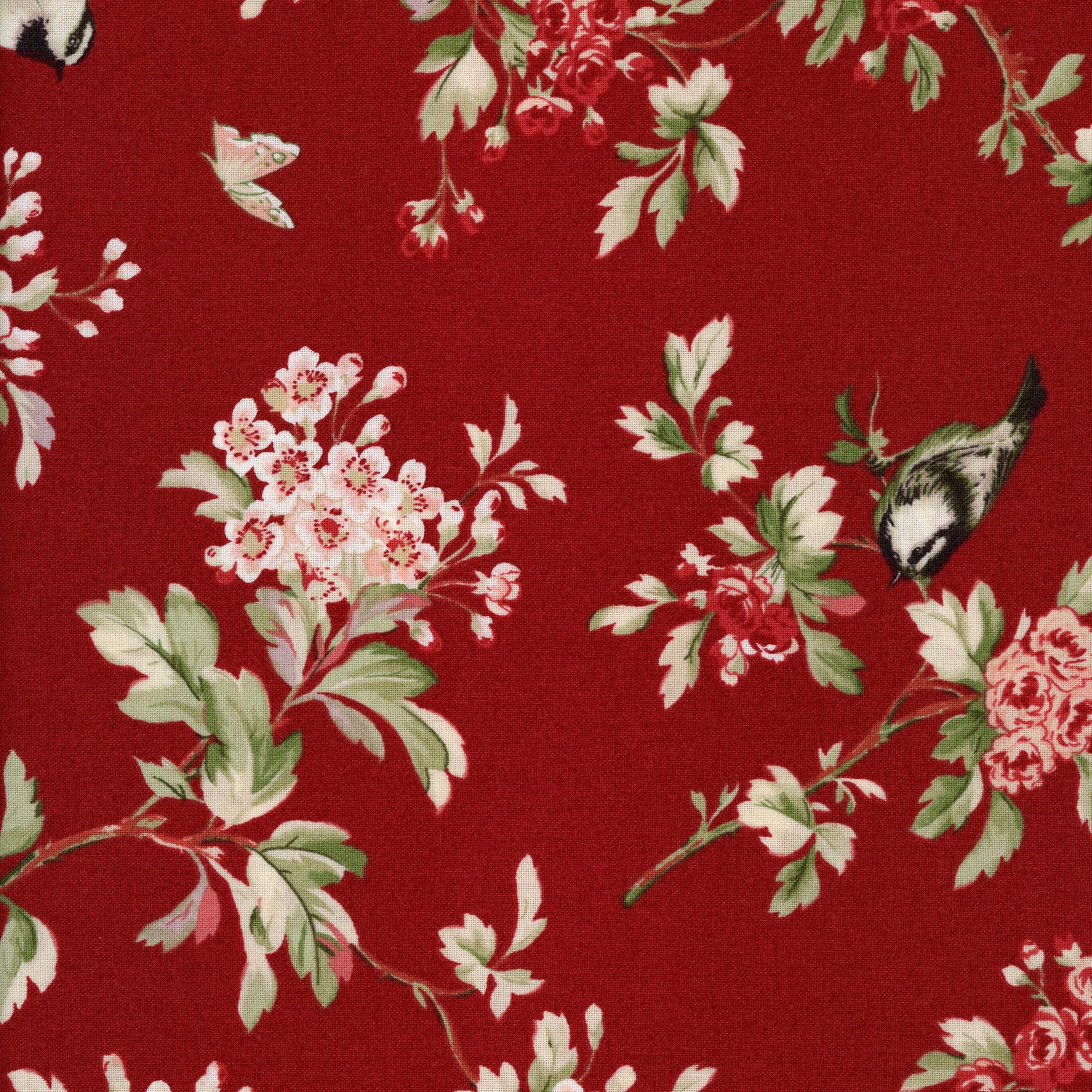 Celebrate the beauty of the festive season with Maywood Studios Season's Greetings. This elegant fabric features delicate floral sprigs, lush greenery, and charming birds set against a rich red background, evoking a classic holiday feel. Perfect for Christmas quilting, seasonal table runners, and cosy home dcor, this fabric brings warmth and sophistication to any project.