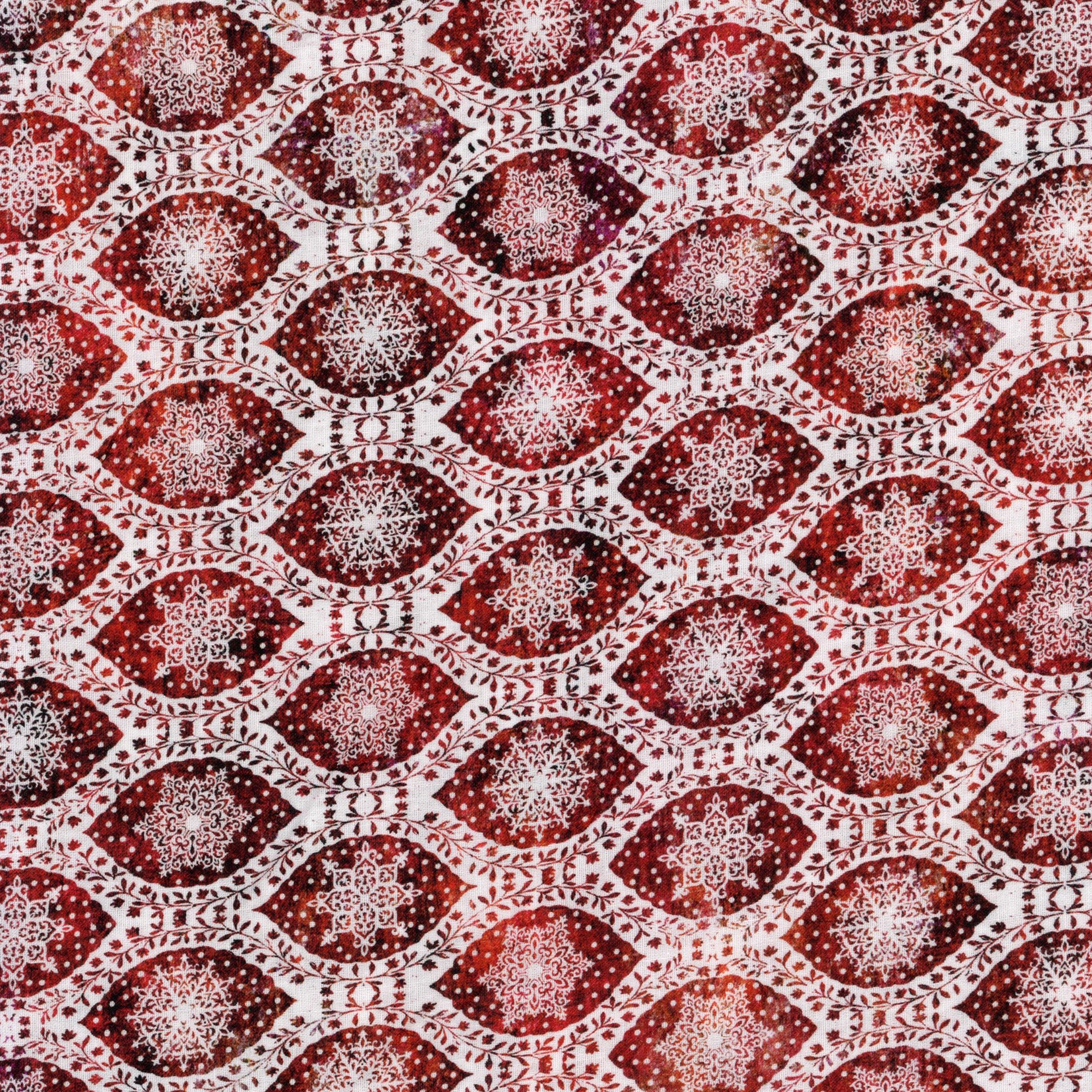 Celebrate the warmth and beauty of the festive season with In The Beginning Fabrics Nature's Winter by Jason Yenter – Red. This rich red fabric showcases intricate snowflake medallions framed within soft geometric curves, accented by delicate vine motifs. The deep crimson tones create a striking contrast with the crisp white details, making it a perfect fabric for holiday quilting, Christmas décor, and timeless patchwork projects. Jason Yenter’s signature artistry brings elegance and movement to every design.