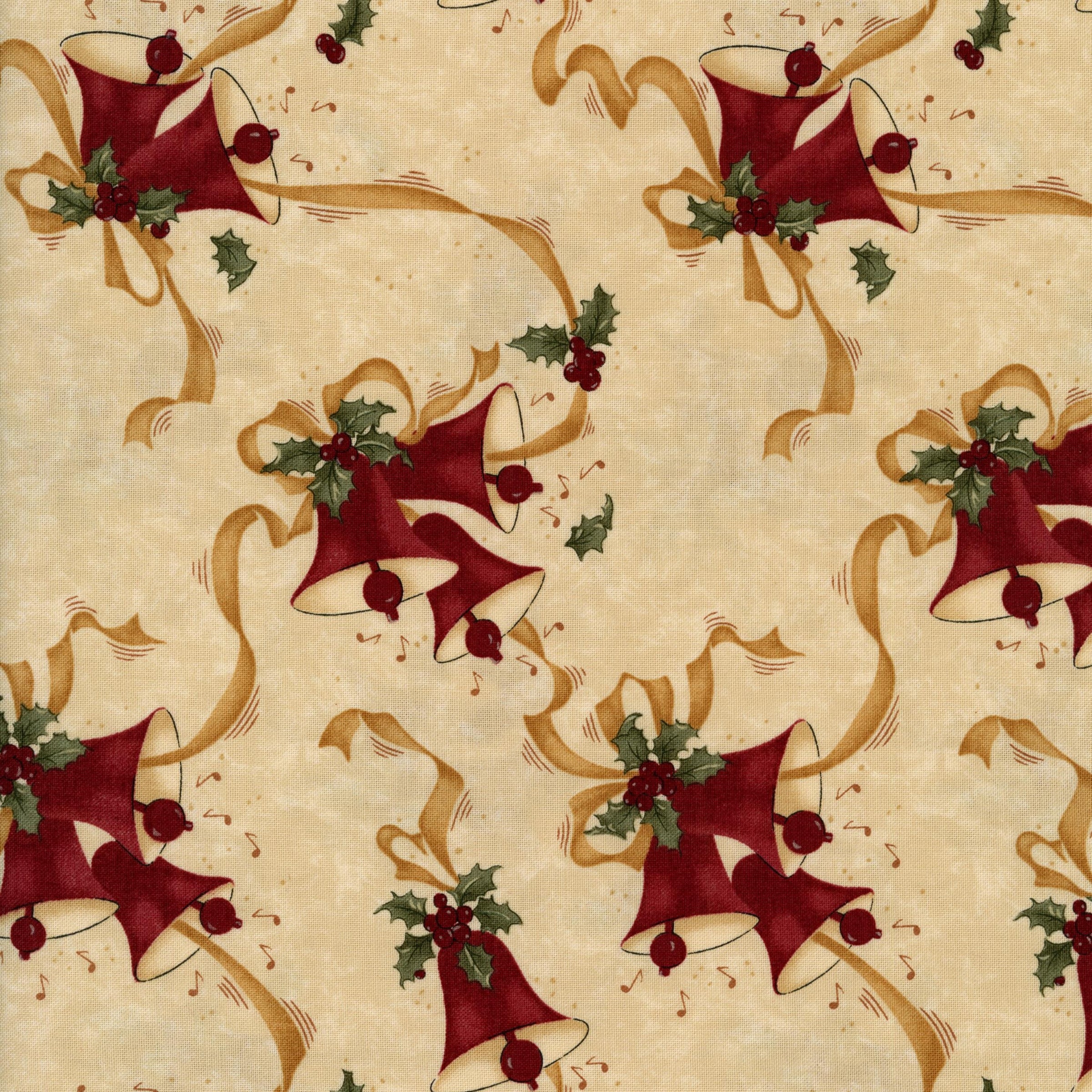 Celebrate the spirit of the season with A Vintage Christmas by Kansas Troubles for Moda Fabrics. This elegant print features classic red bells adorned with holly leaves and tied with flowing golden ribbons against a soft cream background — a timeless design that captures the warmth and nostalgia of traditional Christmas décor. Perfect for festive quilting, seasonal table runners, stockings, and holiday crafts, this print adds a charming touch of vintage cheer to any project.