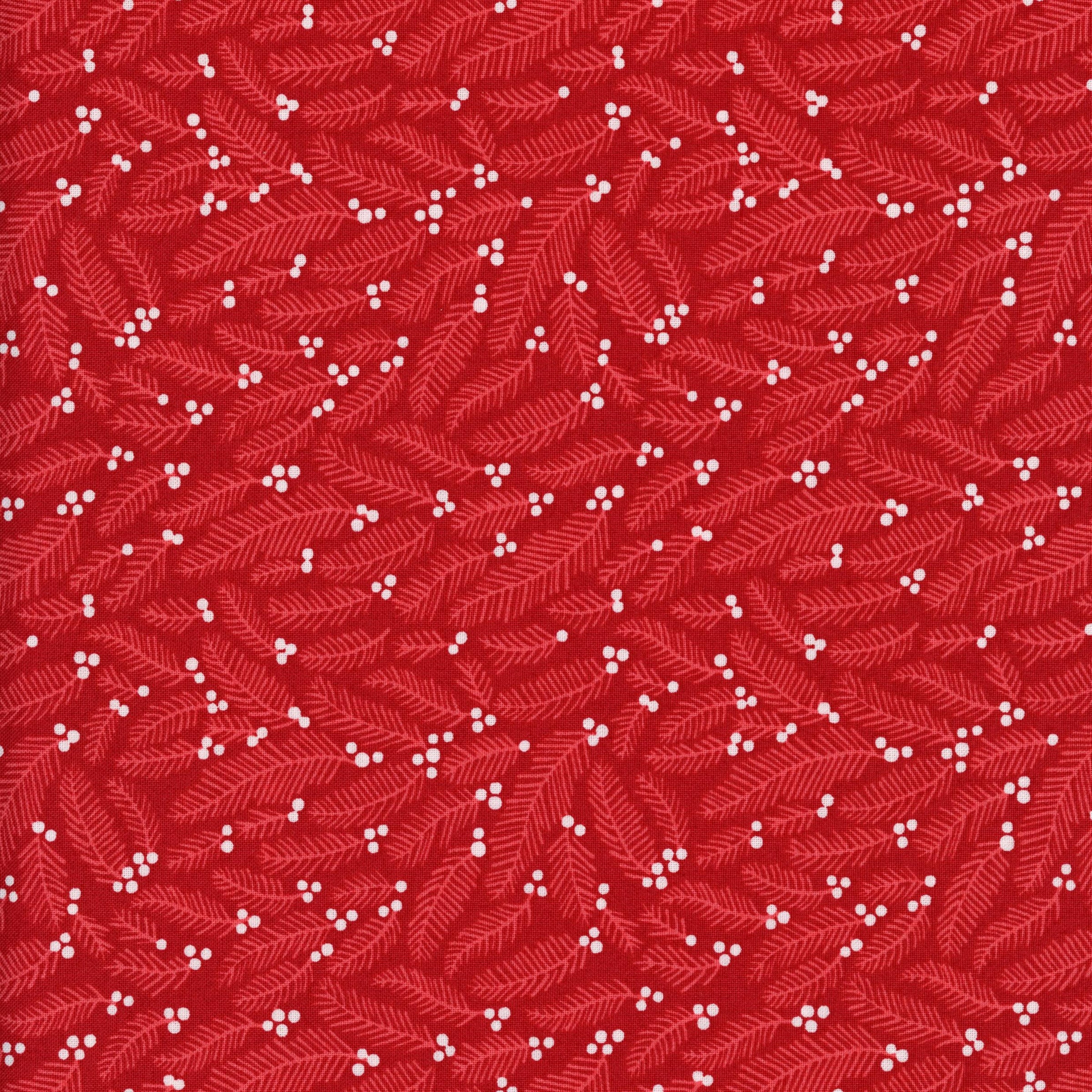 Bring festive charm to your sewing projects with Moda Christmas Eve by Lella Boutique. This cheerful design features tonal pine branch motifs scattered across a bold red background, accented with delicate clusters of white berries. The subtle texture and holiday-inspired pattern make it perfect for capturing the warmth and magic of the Christmas season.