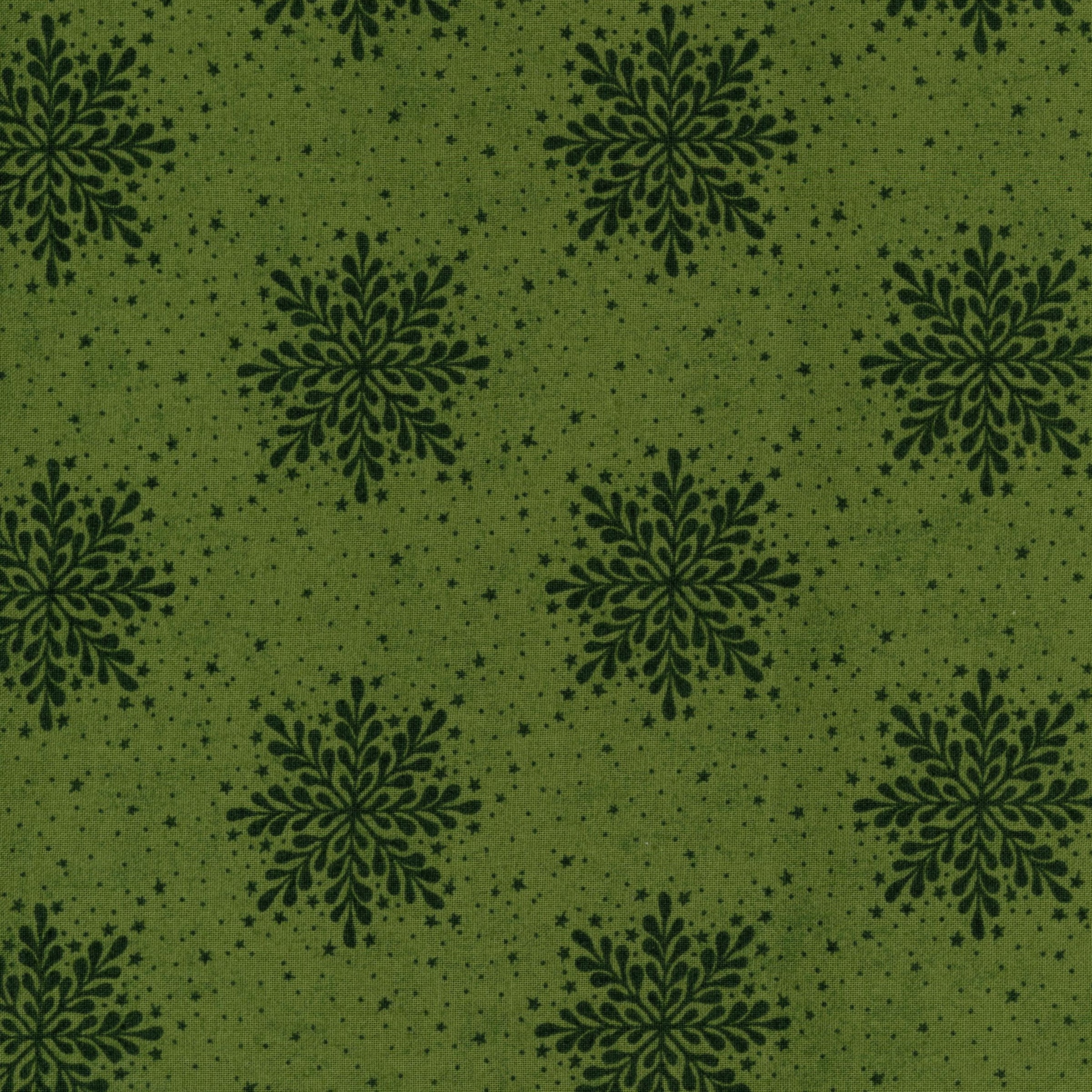 Bring festive charm to your next quilting project with Jolly Good by BasicGrey for Moda Fabrics. This elegant green fabric features dark evergreen snowflake motifs scattered across a subtle dotted star background, evoking the warmth and magic of the holiday season. Its classic winter-inspired pattern pairs beautifully with other prints in the Jolly Good collection, making it perfect for timeless Christmas quilts, table runners, or cosy home décor.