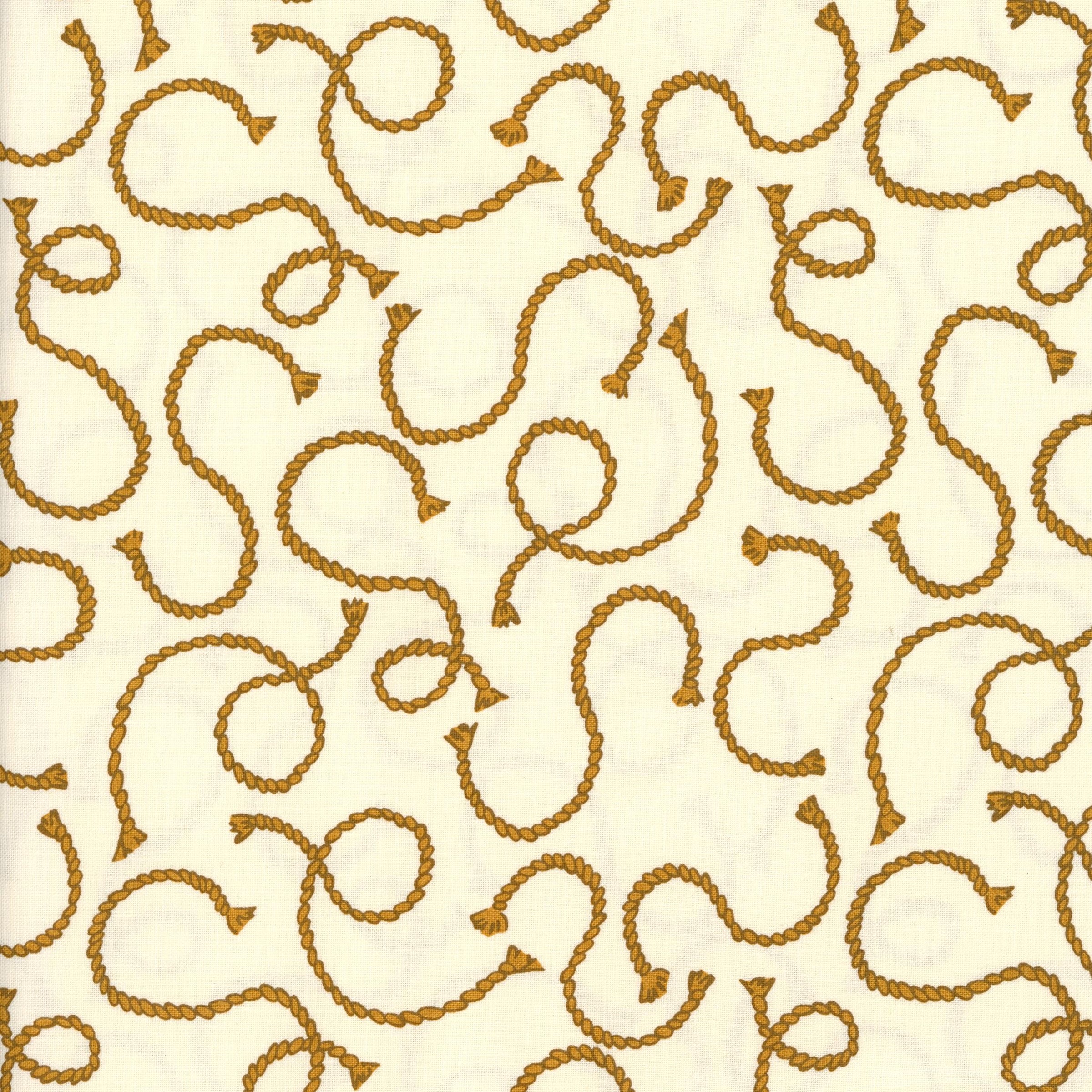 The Moda Ponderosa collection by Stacey Iset Hsu brings a touch of Western charm to your quilting projects. This coordinating print features playful golden rope loops set against a warm cream background, evoking the rustic spirit of the open range. Ideal as a complementary blender or a statement piece in themed quilts, the design adds subtle movement and texture that pairs beautifully with the rest of the Ponderosa range.