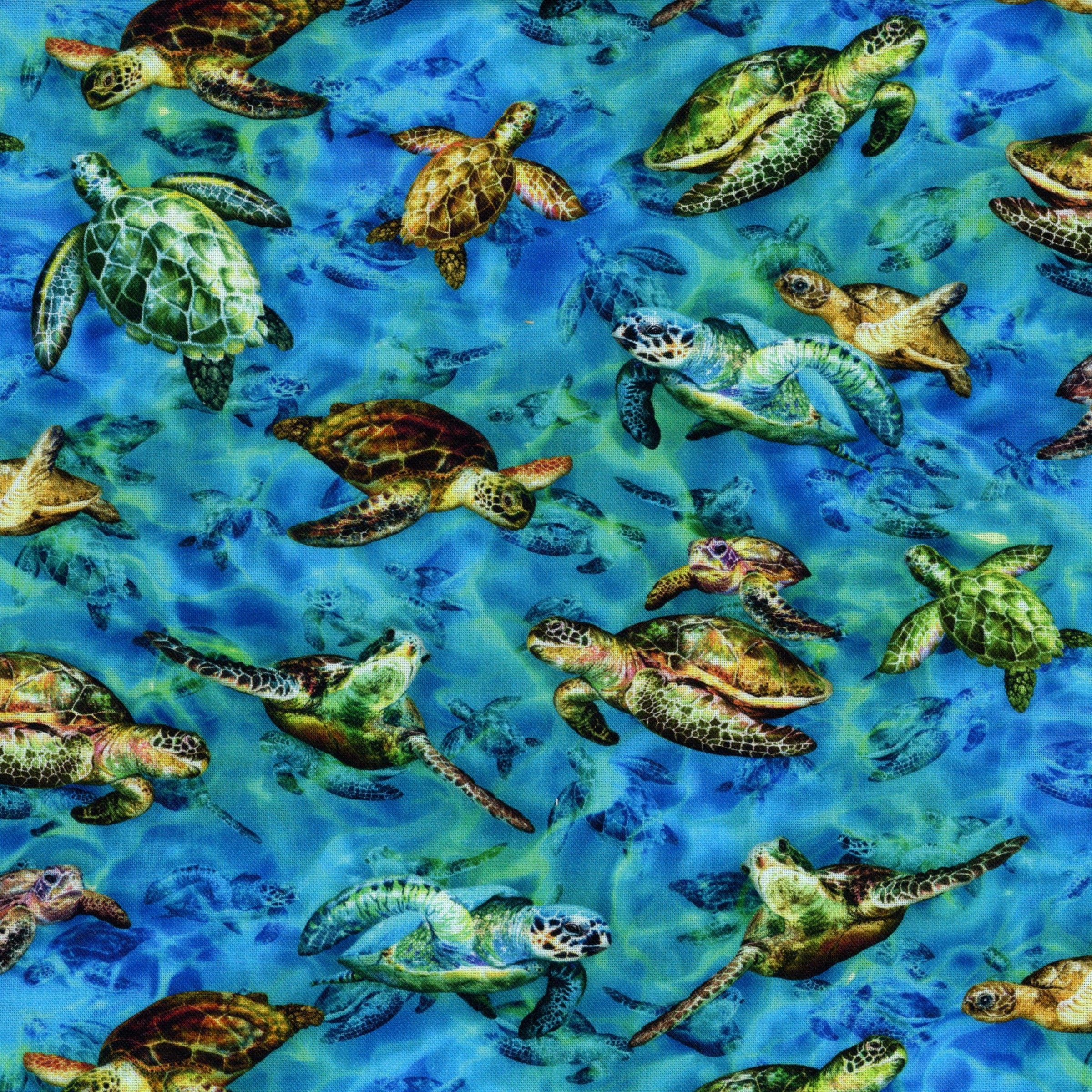 Bring the beauty of the sea to your quilting and craft projects with Oasis Fabrics – The Deep (Turtles). This stunning design features graceful sea turtles gliding through rippling blue waters, surrounded by the shimmering textures of the ocean. Perfect for marine-inspired projects, this fabric captures the serene elegance of underwater life and adds a vibrant, natural touch to your creations.