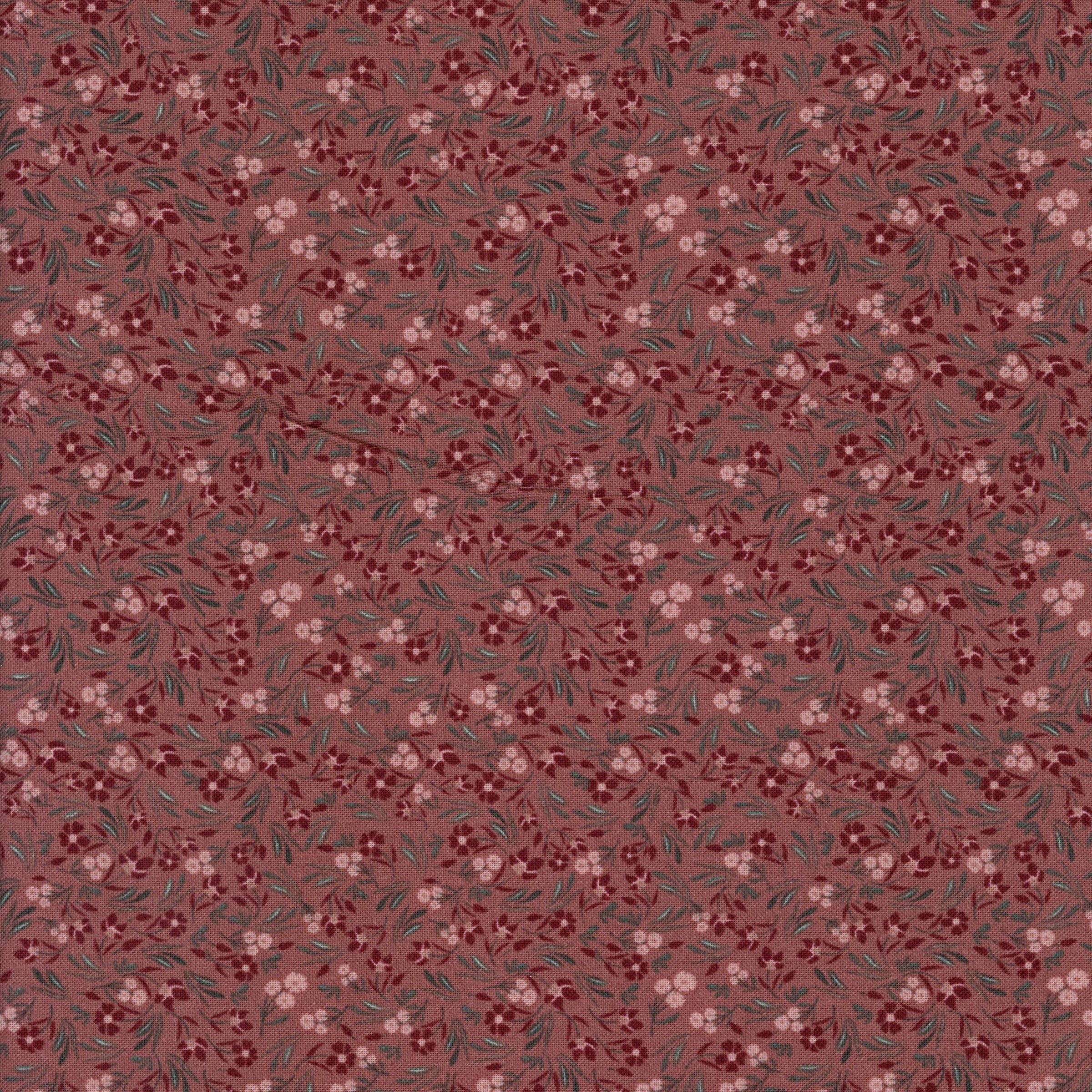 Design: Scattered small florals in rose and blush tones with green leaves on a muted rose background
