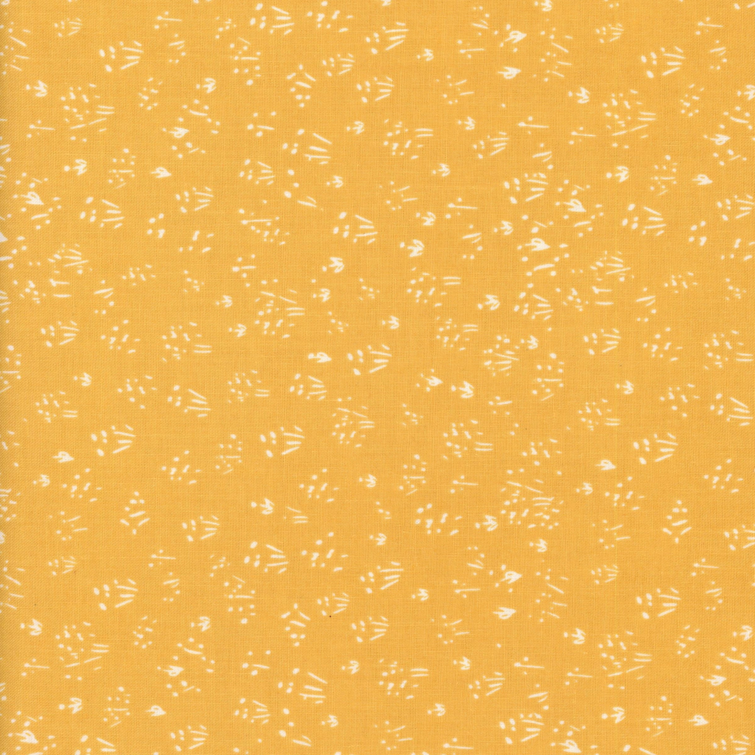 Brighten up your stash with Farm Livin Sunscatter by Diane Labombarbe for Riley Blake Designs. This sunny yellow fabric is adorned with a delicate scatter of white abstract shapes that resemble tiny leaves, petals, or seed pods. Softly textured and cheerful, it makes a perfect companion print for feature fabrics or stands beautifully on its own in cheerful patchwork or springtime crafts.