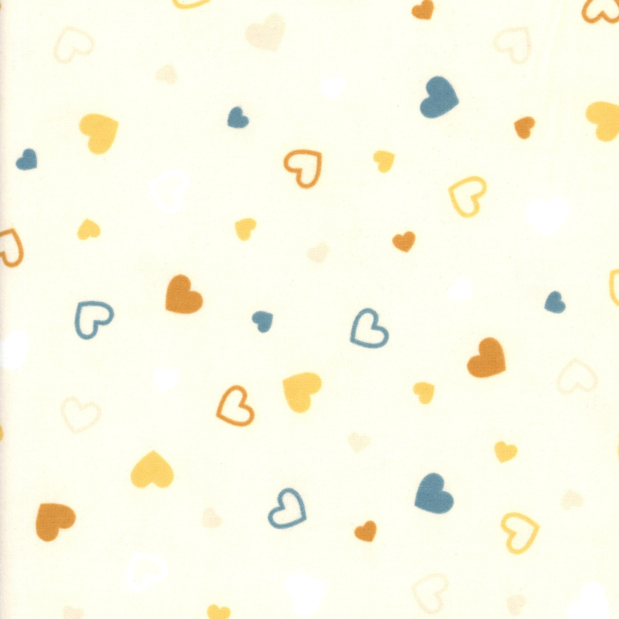 Robert Kaufman Fabrics – Cozy Cotton Flannel in Heartfelt Cream is a sweet and snuggly print featuring scattered hearts in soft tones of gold, blue, and tan on a warm cream background. Made from premium cotton flannel, it offers a plush, brushed texture that’s perfect for creating cuddly quilts, baby blankets, pyjamas, and cosy accessories. Its charming heart motif makes it especially lovely for children’s or love-themed projects.