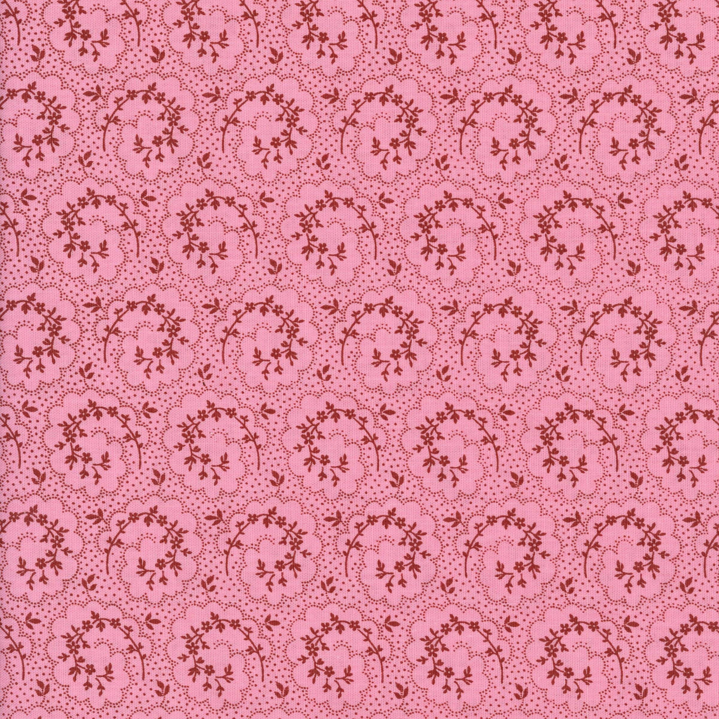 • Design: Dainty rose sprigs in circular medallions on a pink background