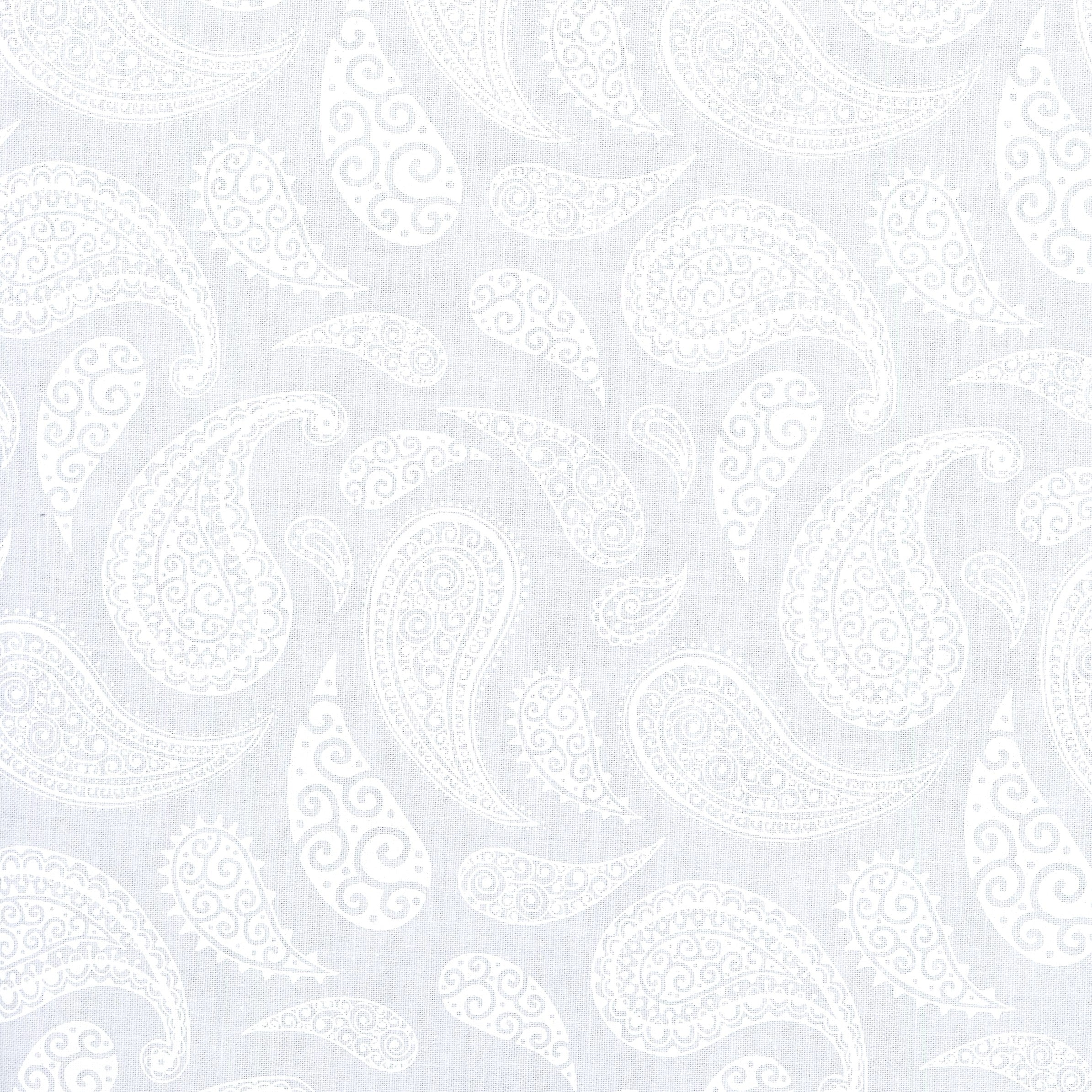 • Design: White paisley motifs with fine swirling detail on a soft white base.