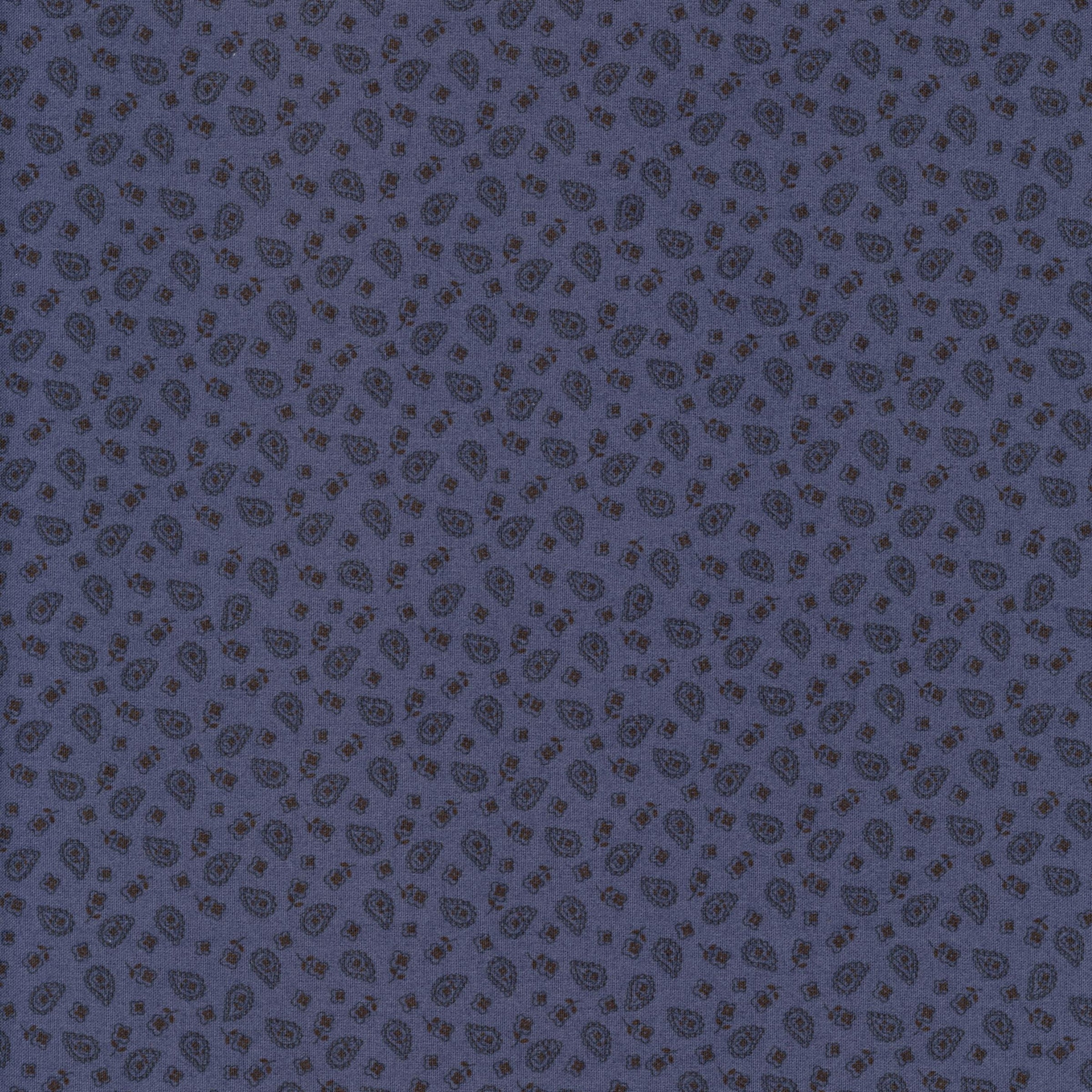 Design: Small-scale paisley and dot pattern in deep indigo and navy tones