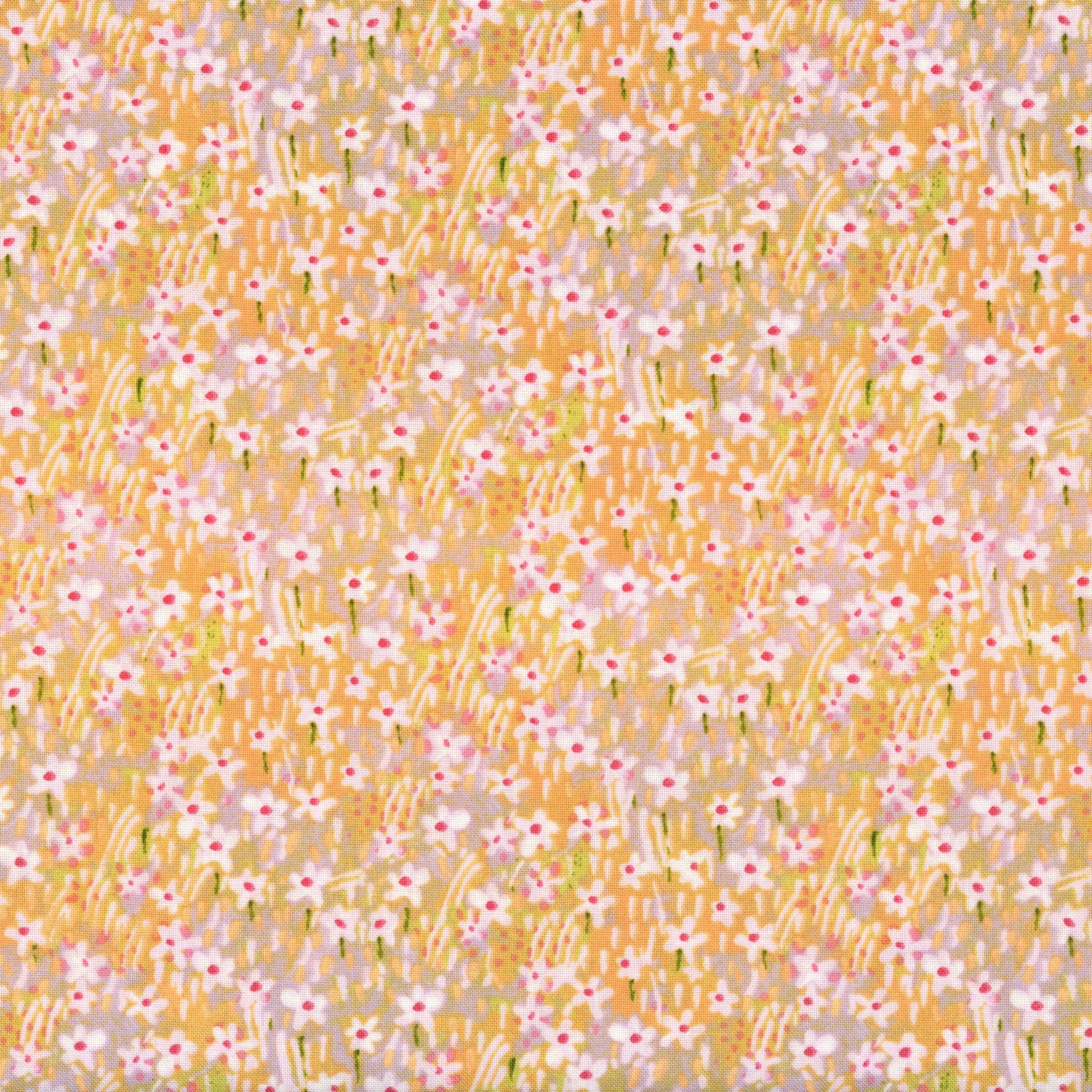 Step into the gentle warmth of a sunlit field with Promise of Spring by Cori Dantini for Blend Fabrics. This charming floral print features tiny white and blush blossoms scattered across a soft golden-yellow background, evoking the beauty of wildflowers in bloom. Subtle brushstroke textures in green and lilac add depth and movement, creating a painterly design perfect for adding warmth and whimsy to your next project.
