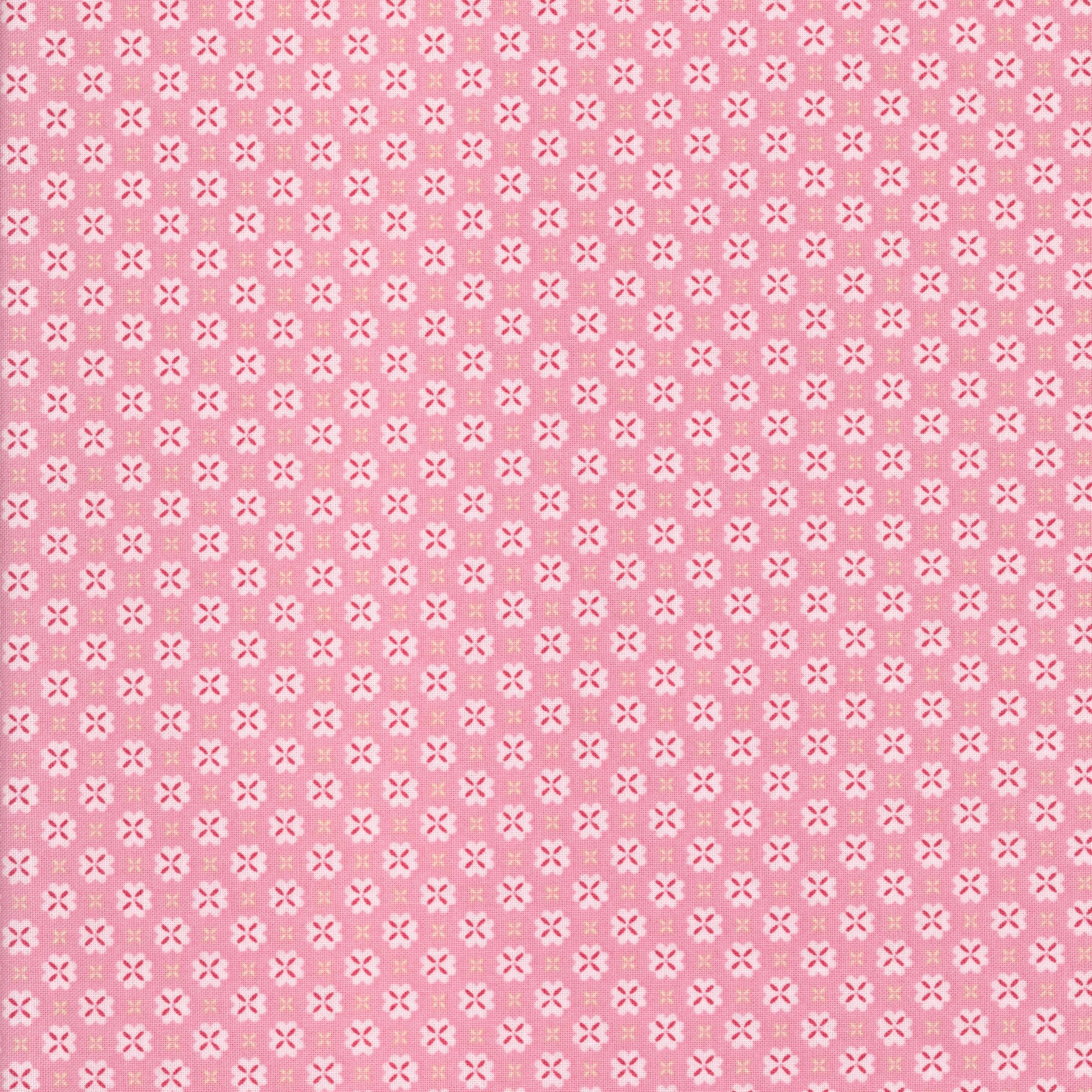 • Design: Mini white four-petal “daisy” dots arranged in a neat grid on pink