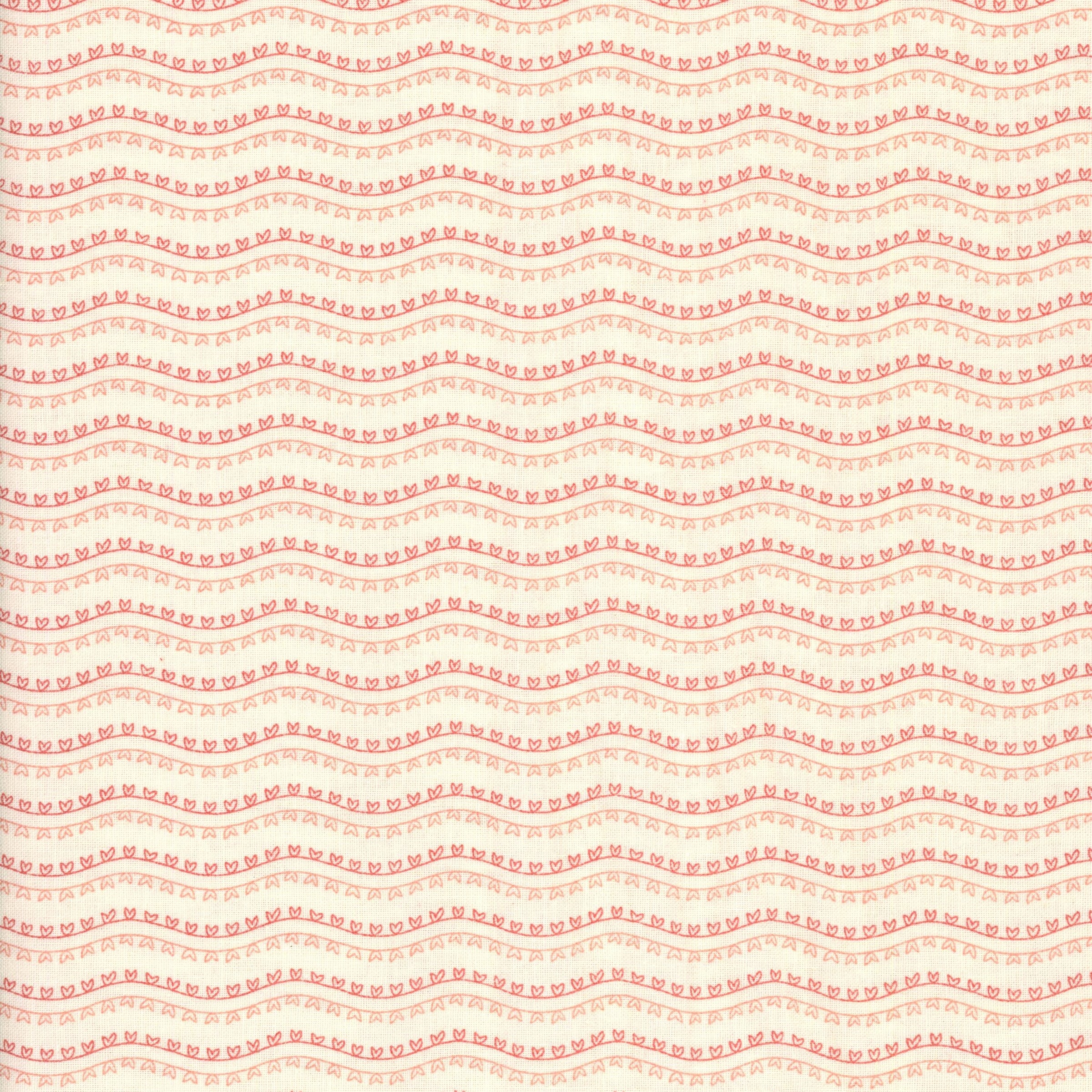Stitch a little love into every project with Need’l Love by Renée Nanneman for Andover Fabrics. Delicate hand-drawn hearts and dainty stitch marks dance along gentle blush waves on a warm cream ground, giving this print a sweet, homespun charm without feeling fussy. The subtle two-tone palette makes it an easy blender, yet the wavy rows add just enough movement to pep up borders, baby quilts or pieced blocks. Soft, close-woven quilting cotton means it presses flat and handles beautifully—even on curves and tiny seams.