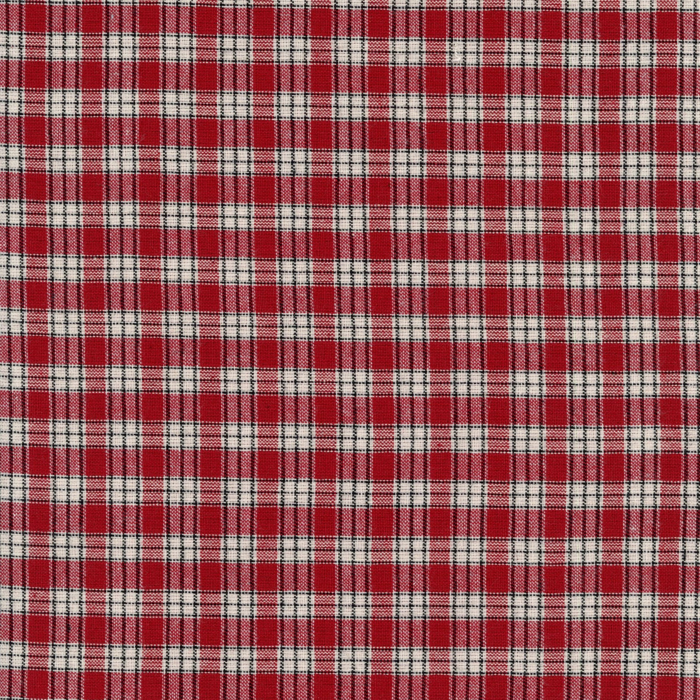 Design: Rich red, ivory and charcoal plaid in a fine, evenly spaced check