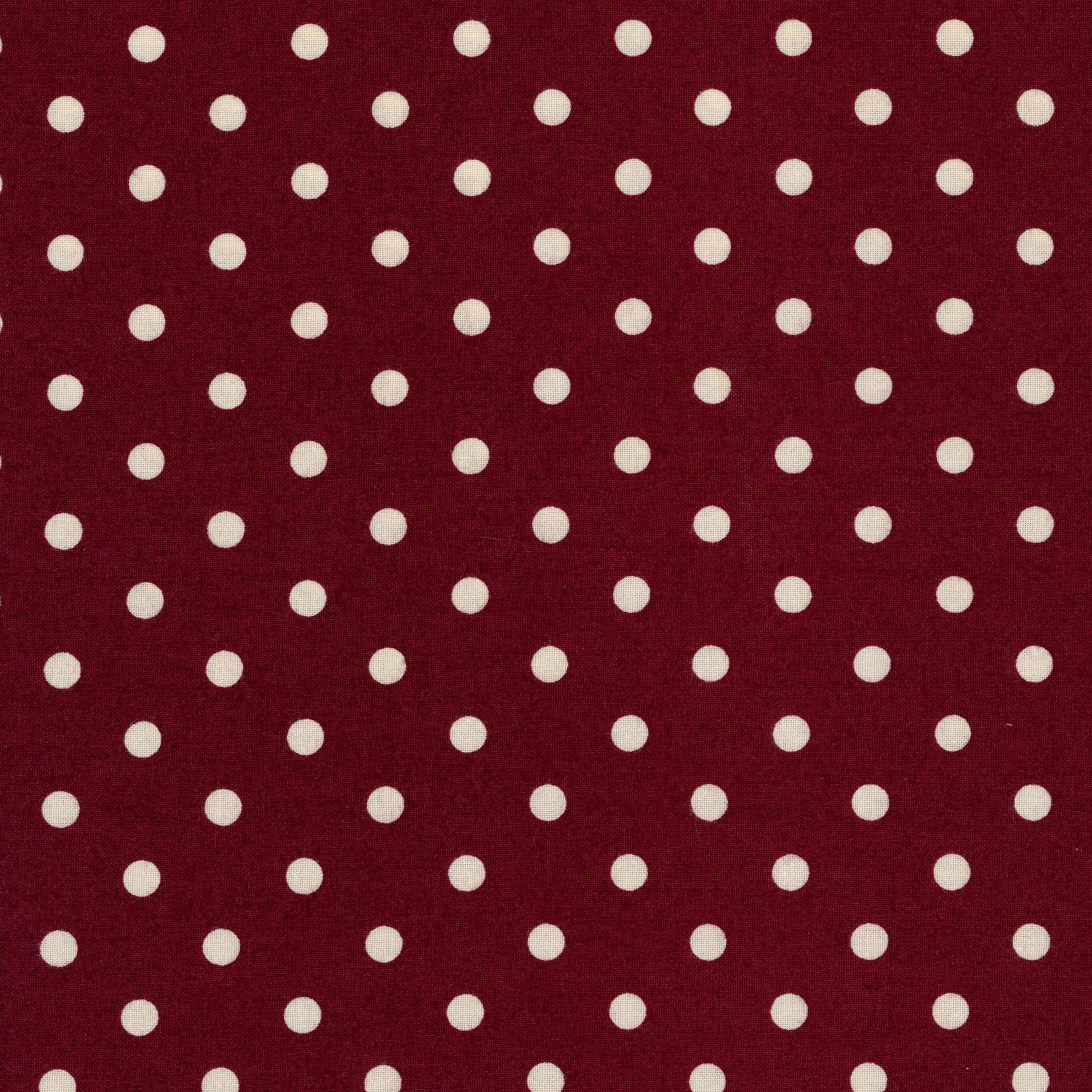 Design: Evenly spaced ivory polka dots on a rich burgundy background