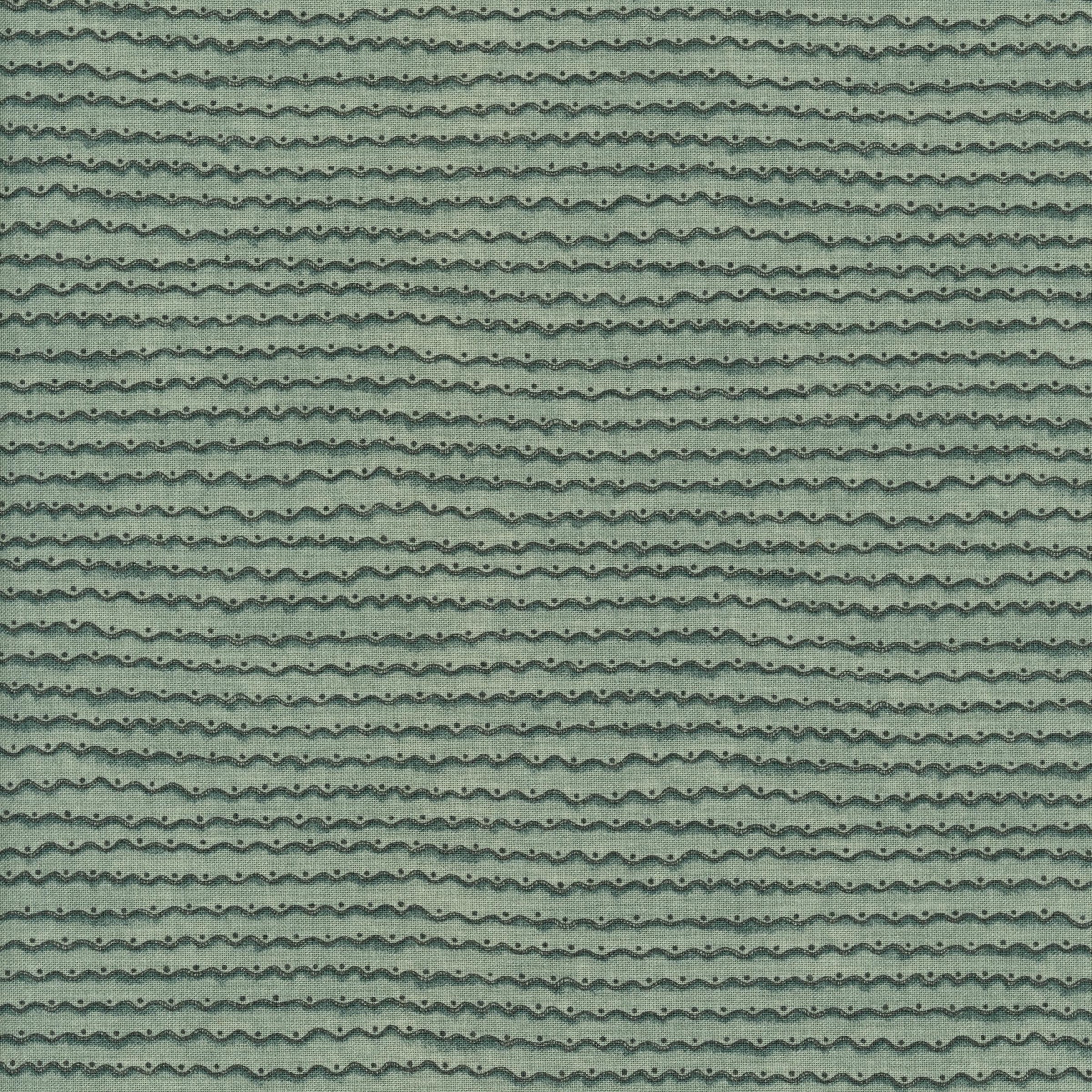 Add a gentle sense of movement to your next project with Moda Fabrics – Garden Notes “Seafoam Ric-Rac Stripe”. Soft sea-green ripples, edged with tiny charcoal dots, meander across the fabric like rows of vintage ric-rac trim. From a distance it reads as a textured solid; up close it reveals playful waves that pair effortlessly with florals, geometrics or low-volume prints. Printed on Moda’s renowned quilting cotton, it cuts crisply, presses flat and retains its fresh coastal hue wash after wash—ideal for everything from modern patchwork to stylish home accents.
