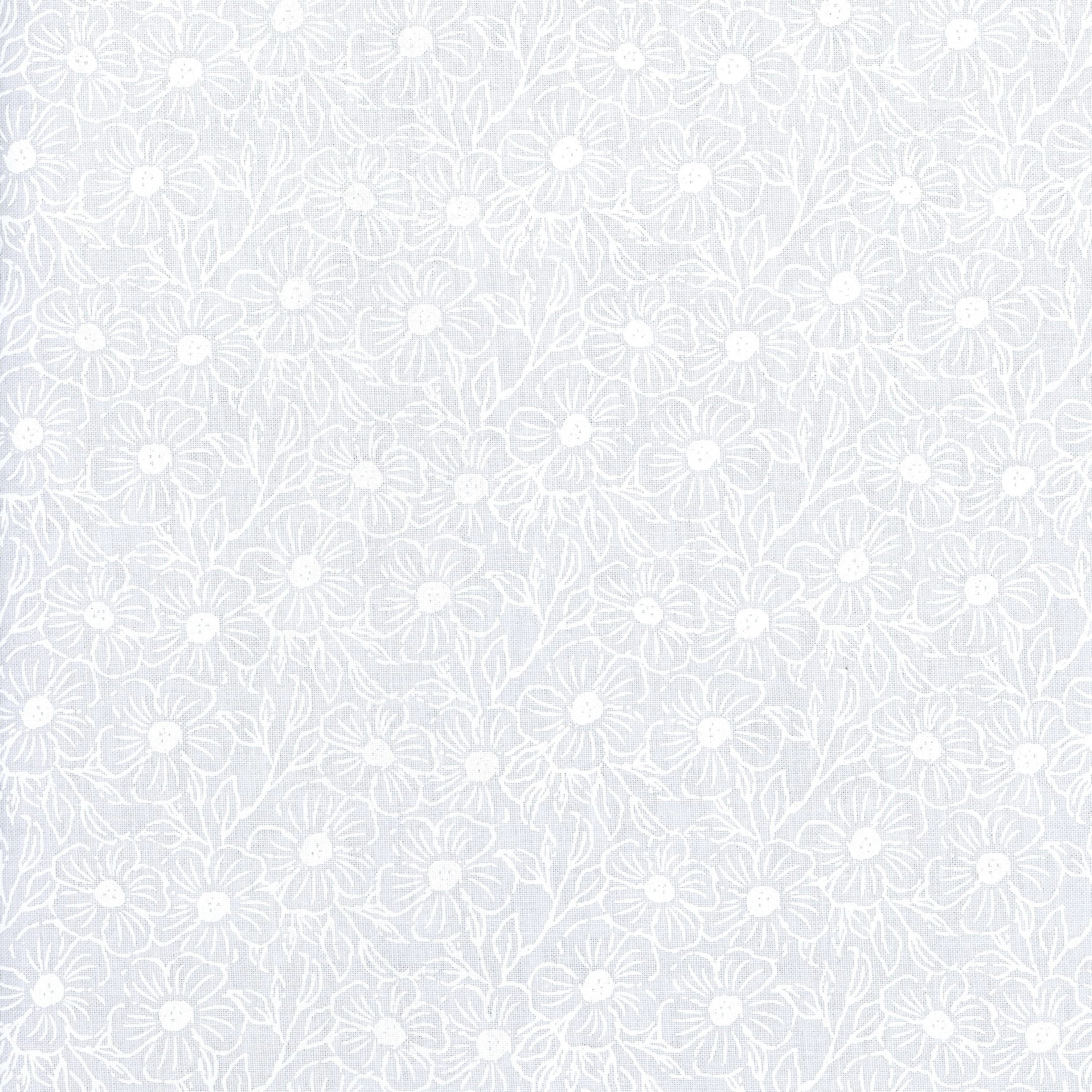 From the Building Blocks "Selfies" range by Devonstone Collection, this charming white-on-white floral fabric adds soft texture and a touch of whimsy to your quilting projects. Featuring delicate daisy outlines scattered across a crisp white base, the subtle design brings gentle movement and light without distracting from your main prints. A versatile essential, it works beautifully as a background, blender, or low-volume accent in both modern and traditional quilts.