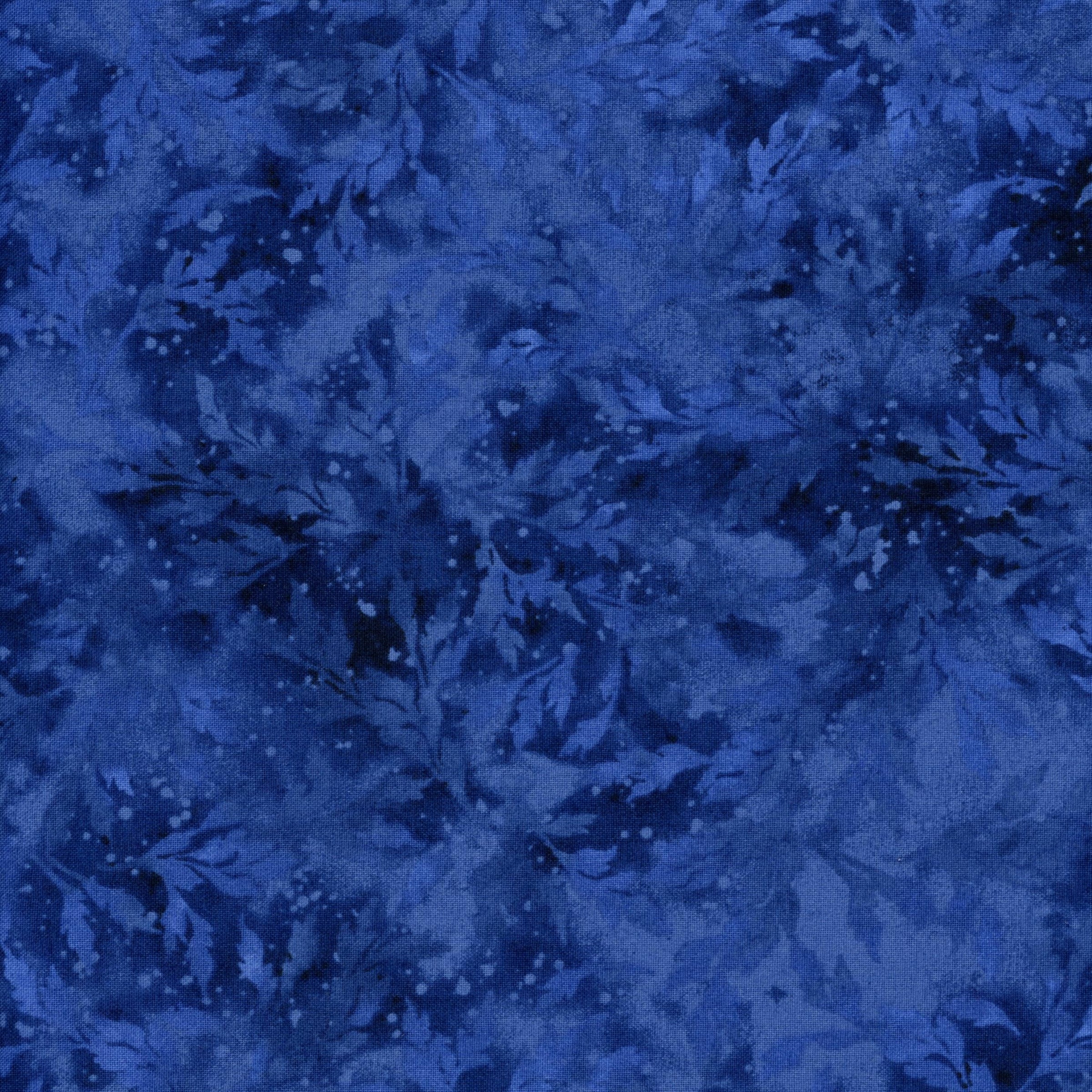 Design: Tonal fern and leaf texture in deep midnight blue hues