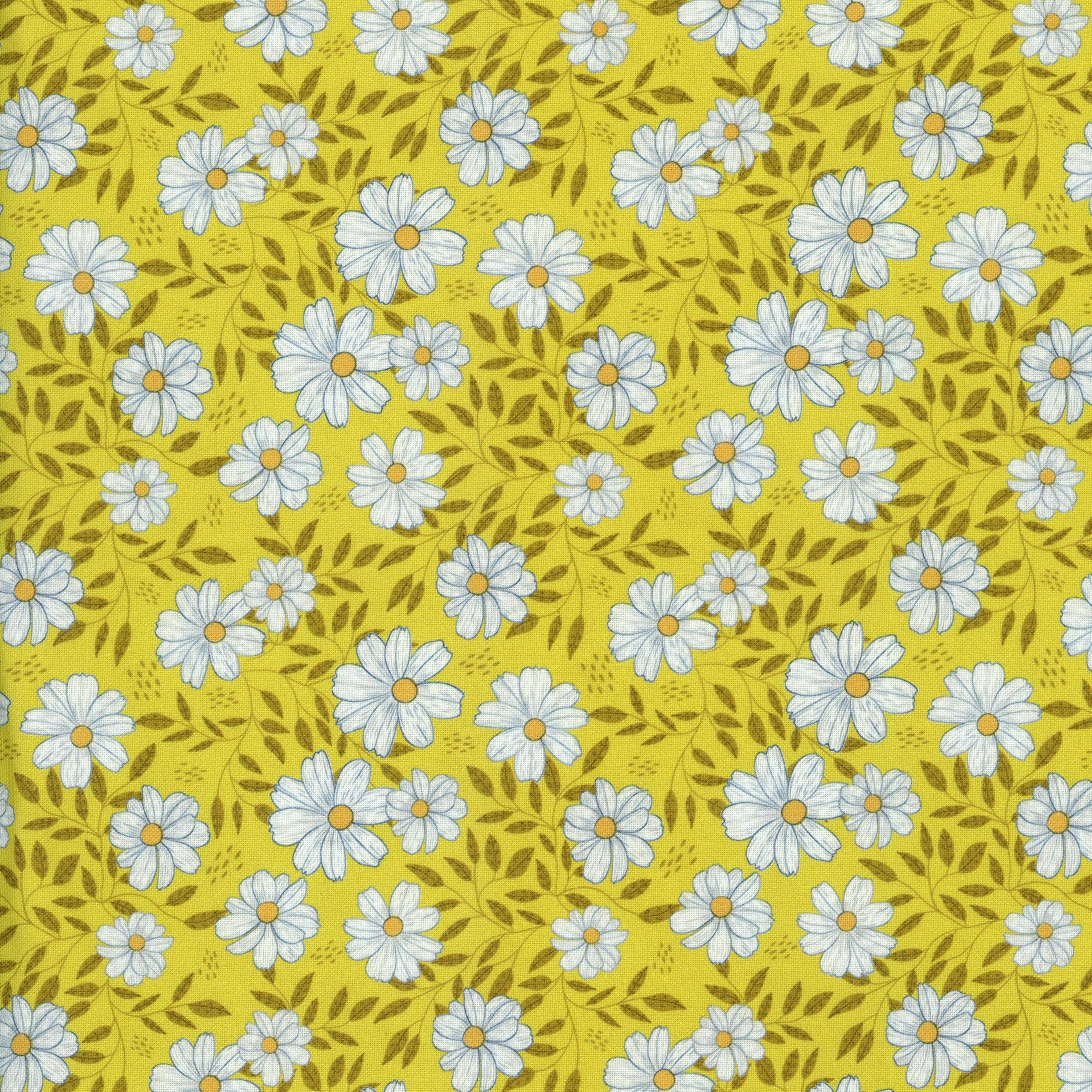 Bring a cheerful, timeless touch to your next project with Vintage Florals by Mel Armstrong for Nutex. This fabric features delicate white daisies with soft golden centres, set against a warm yellow background patterned with leafy sprigs. The playful yet elegant design captures the essence of a sunny garden, making it a versatile choice for quilts, patchwork, home décor accents, and charming handmade gifts. Its bright and inviting look will add warmth and personality to any sewing project.
